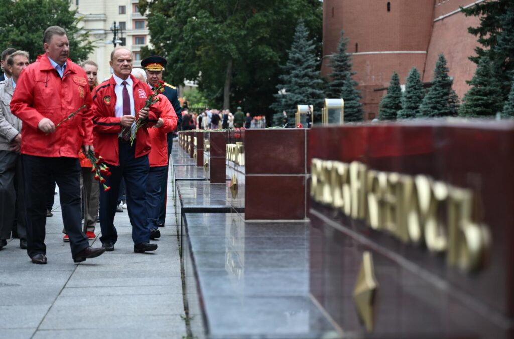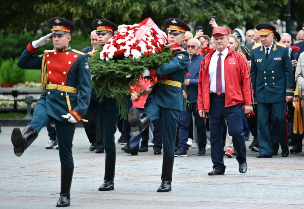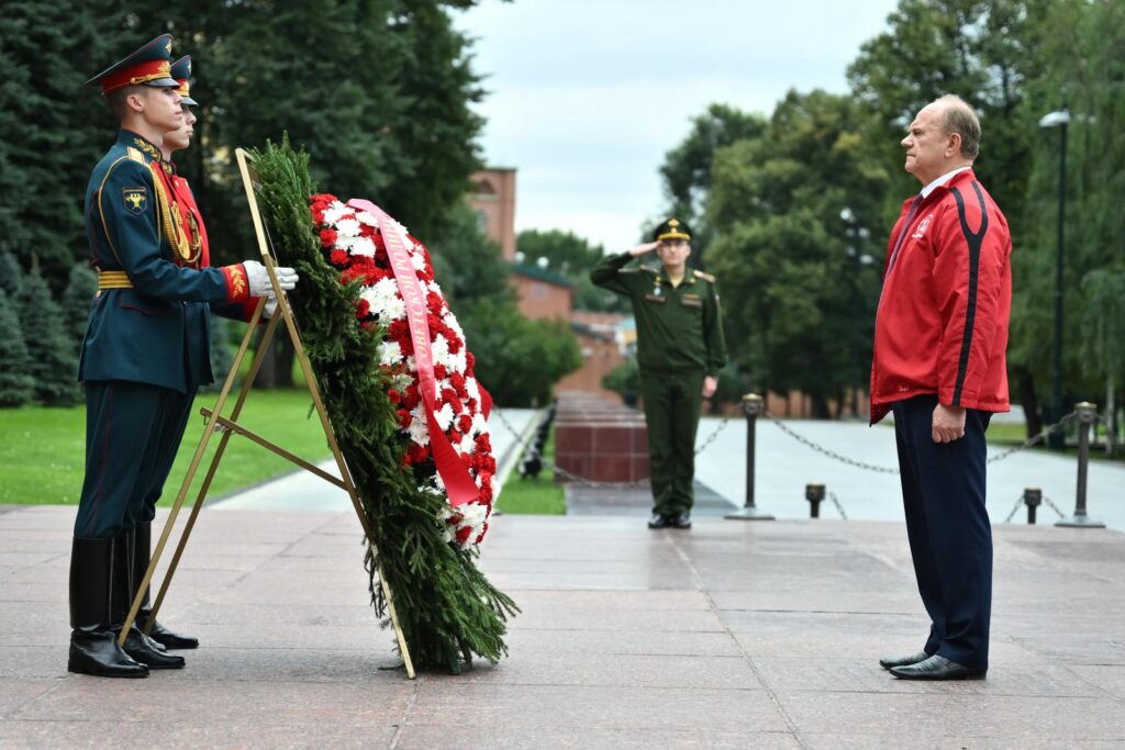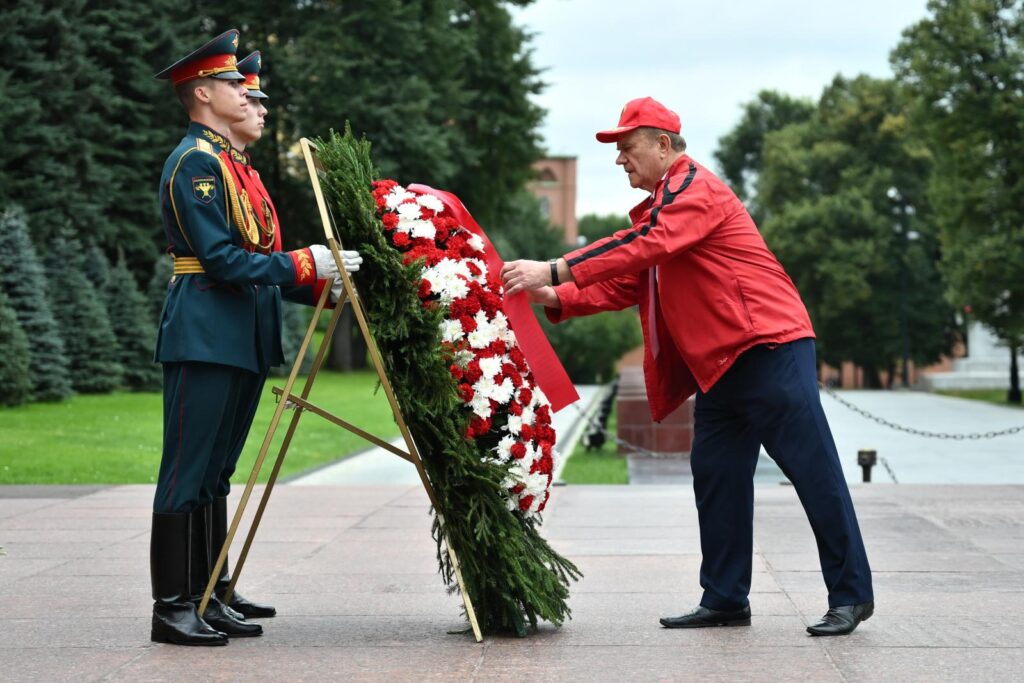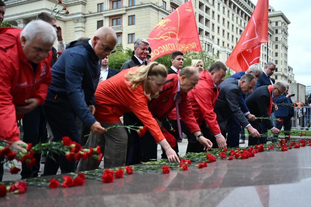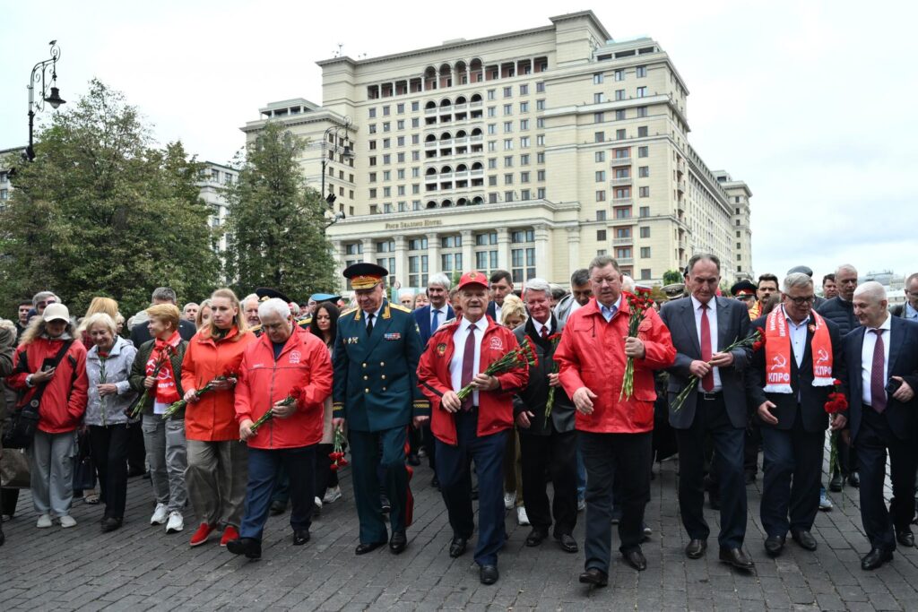 По завершении акции коммунисты проследовали в Александровский сад, где состоялась церемония возложения венков и цветов к Могиле неизвестного солдата.