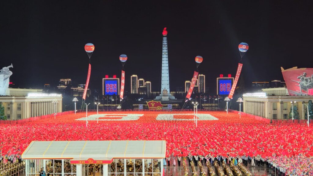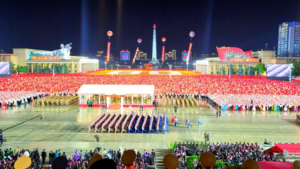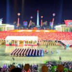 Главные торжественные события в столице КНДР продолжались три дня. Ими стали концерт на стадионе имени 1 мая, праздничный военный парад и демонстрация трудящихся вместе с масштабным факельным представлением. Все события проходили в вечернее время. Это позволяло сделать их особенно яркими, дополнив световыми эффектами, элементами лазерного шоу и красочными фейерверками.
