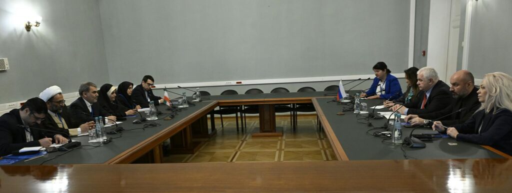 Руководитель парламентской группы Ирана МохсенЗангане тепло поприветствовал всех участников встречи. В своем обращении он особо подчеркнул стратегическую важность российско-иранского диалога и выразил твердую поддержку инициативе по созданию Межпарламентской комиссии в рамках формата «3+3».