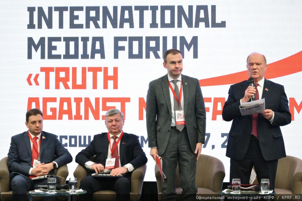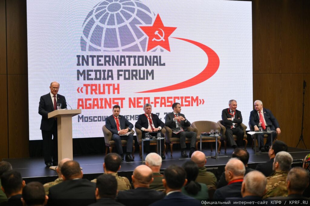 В четверг, 6 ноября, в Москве открылся Международный медиофорум “Правда против неофашизма”. В мероприятии принимают участие делегации из более чем сорока стран ближнего и дальнего зарубежья, представители организаций, поддерживающих Компартию России в ее борьбе с “коричневой чумой”.