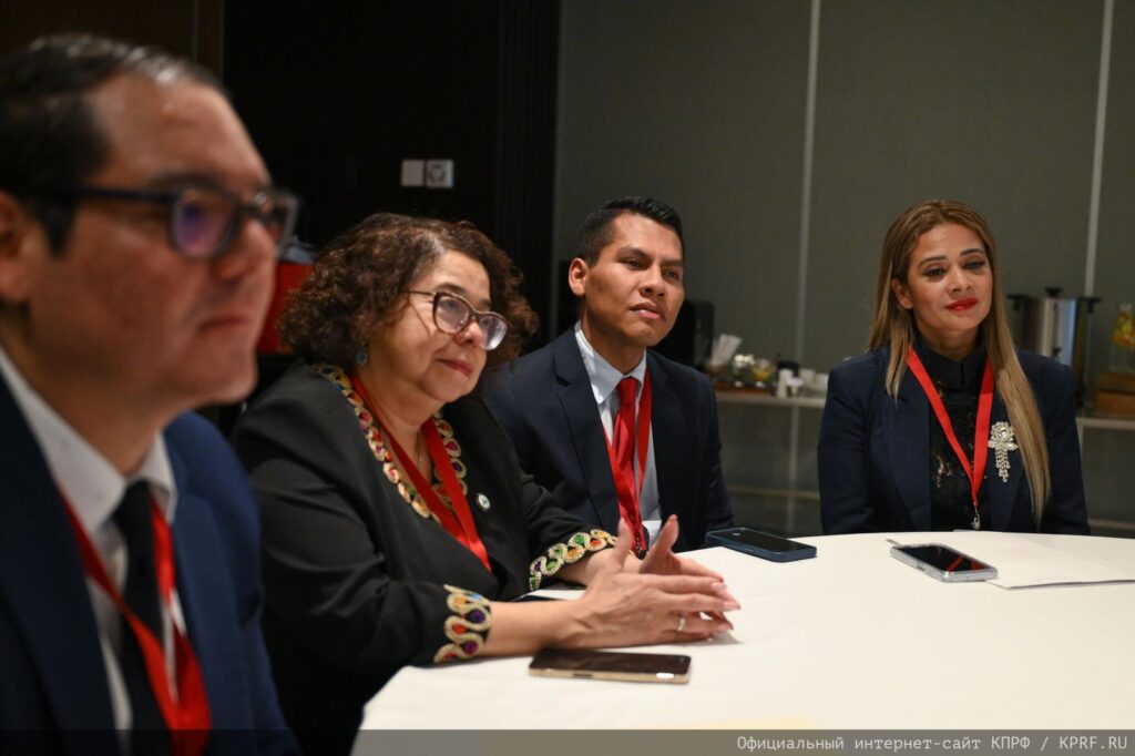 Также прозвучали выступления официального представителя и Директора Департамента информации и пропаганды МО ЦК Коммунистической партии Китая Ху Чжаомин, секретарь ЦК Коммунистической партии Белоруссии по молодежной политике Алеся Холевинская, член Совета по взаимодействию со СМИ и гражданским обществом Сандинистского фронта национального освобождения Никарагуа Маурис Ортега Мурилья, Председатель, координатор организации Рабочей группы Всемирной антиимпериалистической платформы Димитриос Пателис.