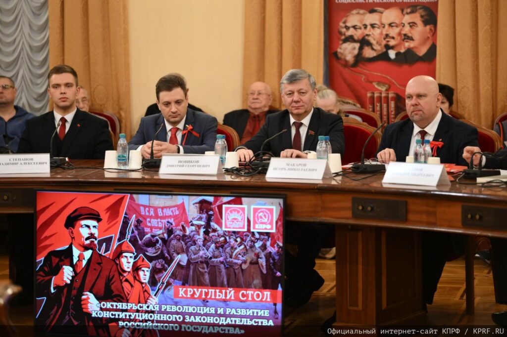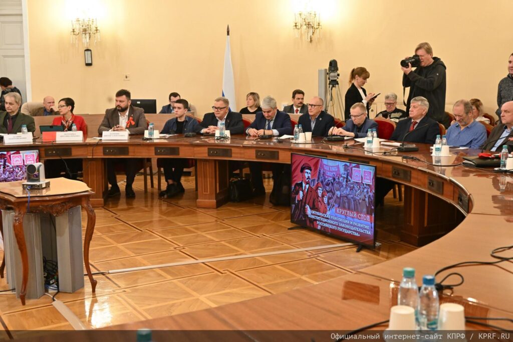 7 ноября в Москве в Доме Союзов состоялся круглый стол фракции КПРФ в Госдуме на тему: «Октябрьская революция и развитие конституционного законодательства Российской Федерации». Ведущим круглого стола и основным докладчиком стал Председатель ЦК КПРФ, Руководитель фракции КПРФ в Госдуме Г.А. Зюганов.