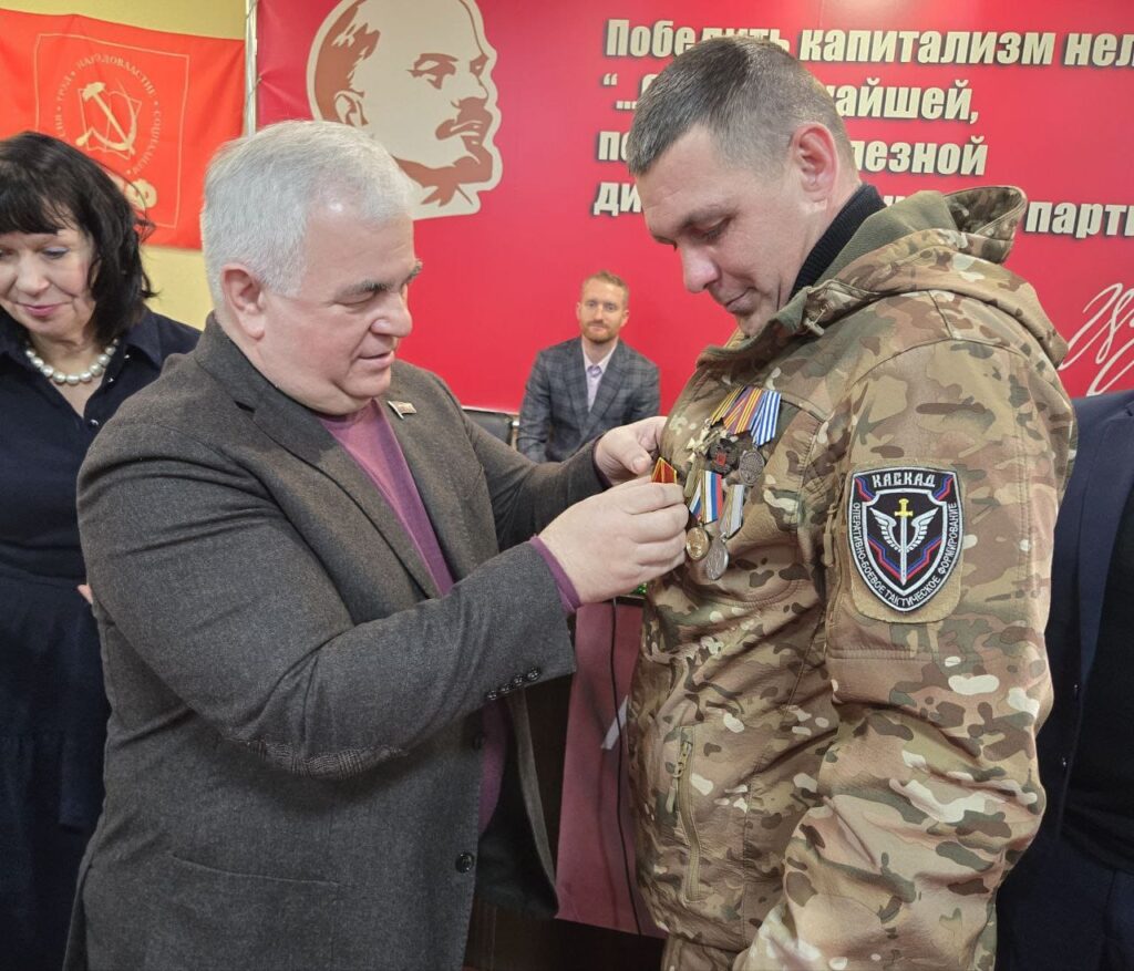 Делее в Республиканском комитете состоялась теплая встреча с однопартийцами. От руководства КПРФ были переданы самые сердечные приветы, намечен план работы на предстоящий Новый год. Дан старт важнейшей социальной инициативе: дойти с помощью и поддержкой партии до каждого жителя освобожденных территорий. В торжественной обстановке активистам, товарищам и военным были вручены партийные билеты, высшие партийные награды и благодарности за преданность делу.