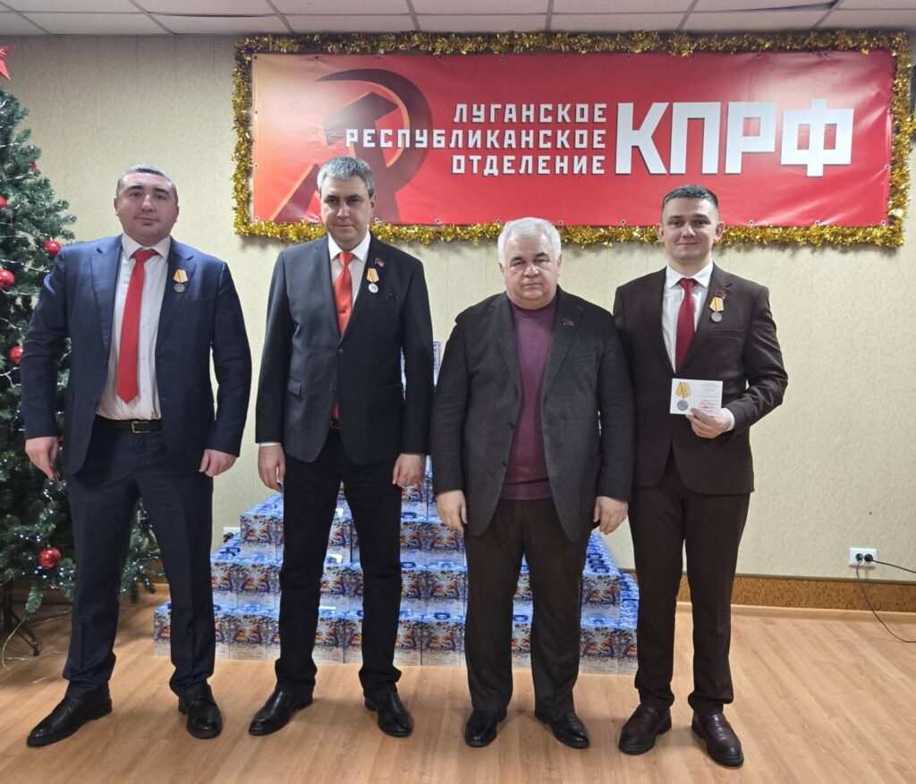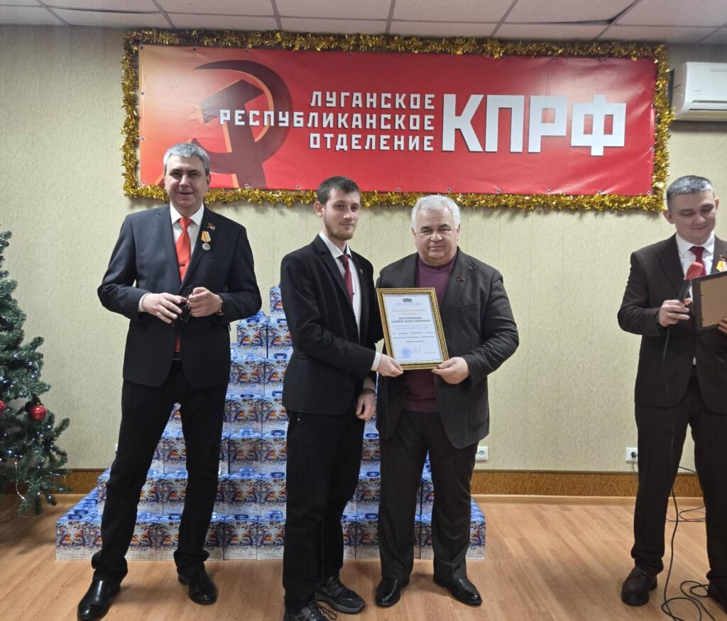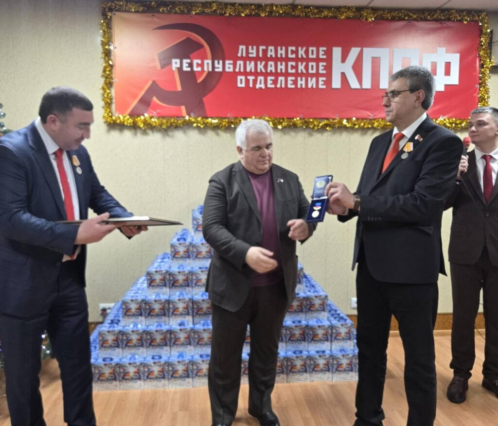 Казбек Тайсаев передал поздравления с наступающим Новым годом и слова благодарности от руководства КПРФ, от имени Председателя ЦК КПРФ Геннадия Андреевича Зюганова, от руководителя общероссийского штаба протестных действий, академика, заместителя Председателя ЦК КПРФ Владимира Ивановича Кашина за самоотверженную работу в непростых условиях. В торжественной обстановке состоялось награждение медалями Министерства Обороны РФ Гуменюка Игоря Геннадиевича, Ермоленко Александра Викторовича и Нарижного Виталия Викторовича. На встрече были обсуждены многие вопросы, подведены итоги уходящего года намечен план работы на предстоящий Новый год. Особо необходимо отметить, что ряды партии пополнились новыми членами, они получили партийные билеты, а наиболее отличившиеся товарищи были награждены памятными медалями.