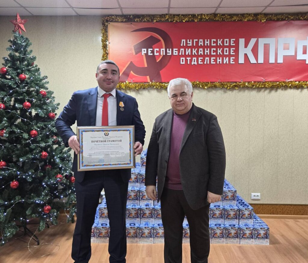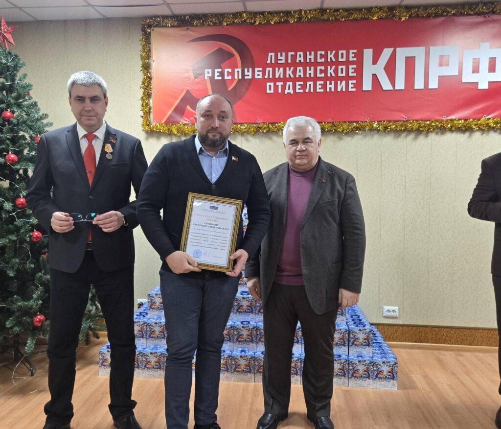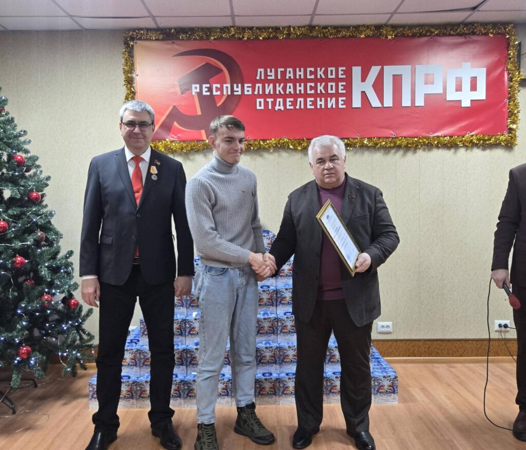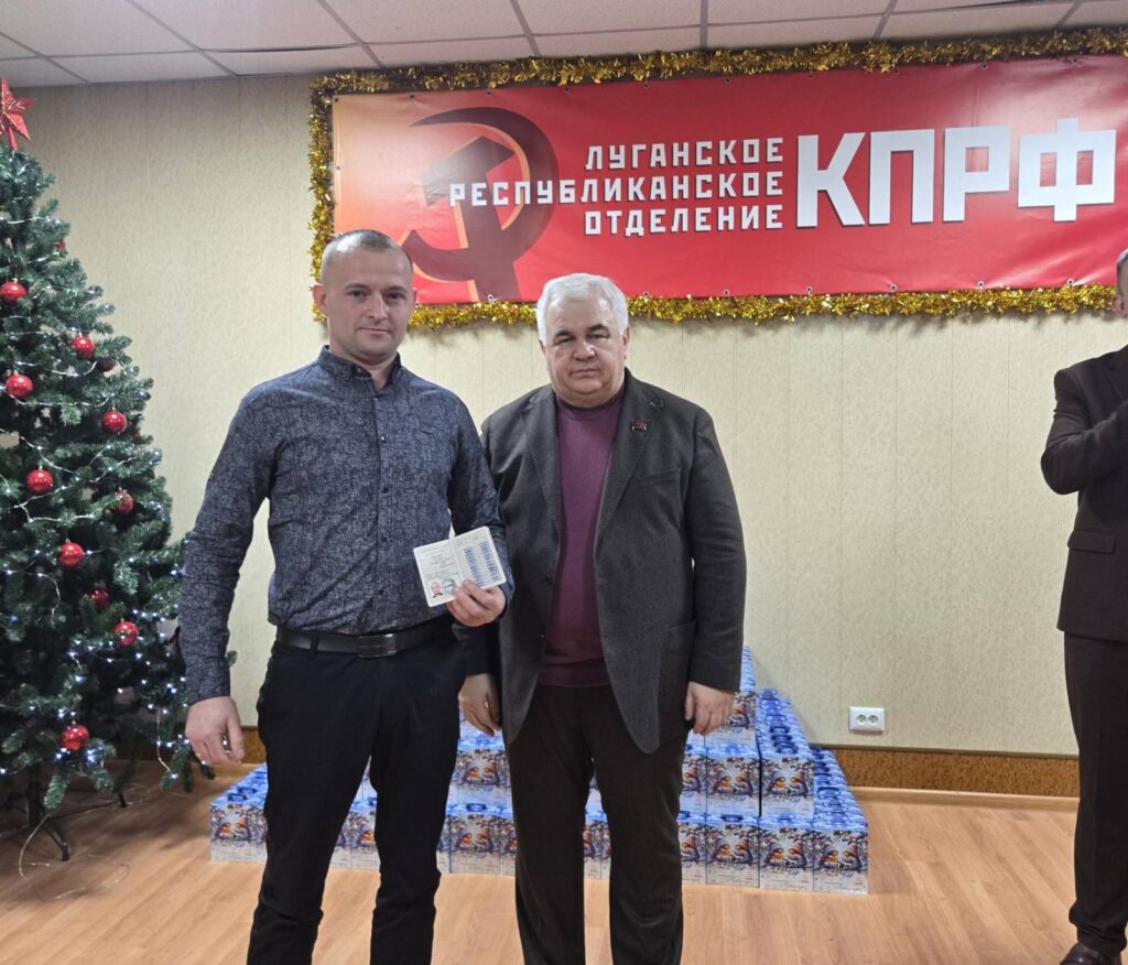 Казбек Тайсаев передал поздравления с наступающим Новым годом и слова благодарности от руководства КПРФ, от имени Председателя ЦК КПРФ Геннадия Андреевича Зюганова, от руководителя общероссийского штаба протестных действий, академика, заместителя Председателя ЦК КПРФ Владимира Ивановича Кашина за самоотверженную работу в непростых условиях. В торжественной обстановке состоялось награждение медалями Министерства Обороны РФ Гуменюка Игоря Геннадиевича, Ермоленко Александра Викторовича и Нарижного Виталия Викторовича. На встрече были обсуждены многие вопросы, подведены итоги уходящего года намечен план работы на предстоящий Новый год. Особо необходимо отметить, что ряды партии пополнились новыми членами, они получили партийные билеты, а наиболее отличившиеся товарищи были награждены памятными медалями.
