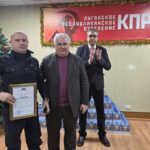 КазбекТайсаев: «Для нас крайне важно лично быть здесь, в Луганске, чтобы выразить нашу солидарность и поддержку нашим товарищам. Это люди, которые на передовой не только политической, но и гуманитарной работы. Их ежедневный труд по восстановлению мирной жизни, помощи населению – это истинный подвиг. Вручение партбилетов и наград – это не просто формальность, а акт признания их вклада в общее дело справедливости и защиты интересов народа Донбасса».