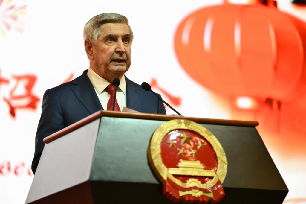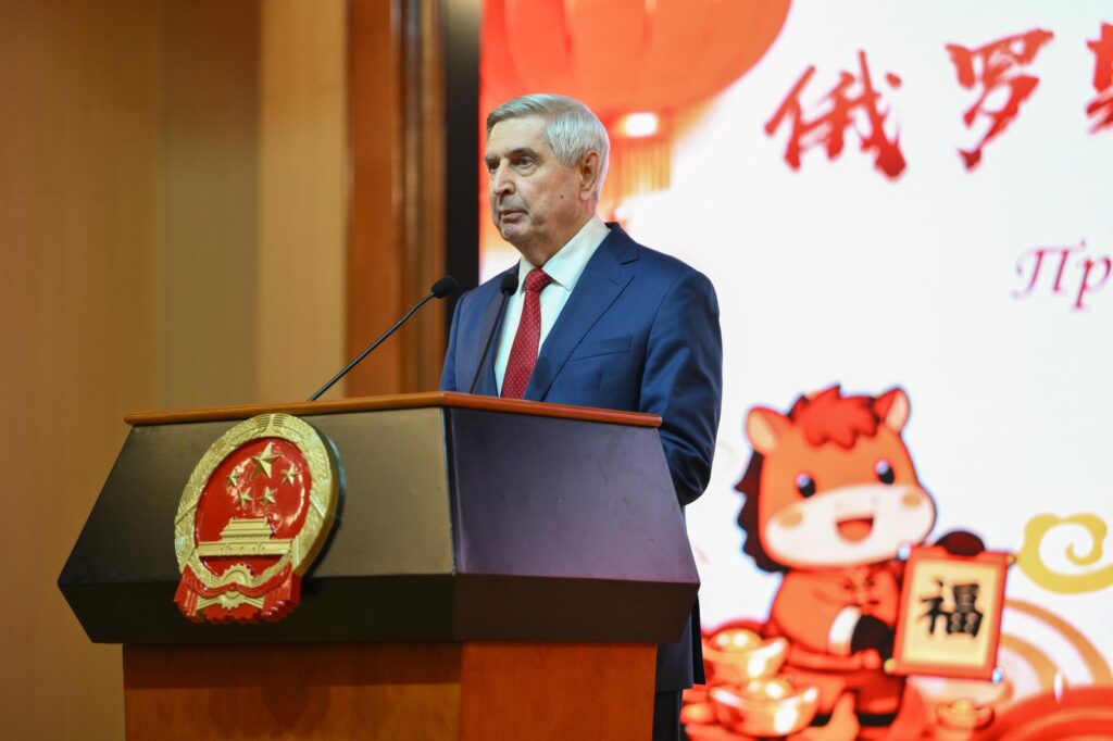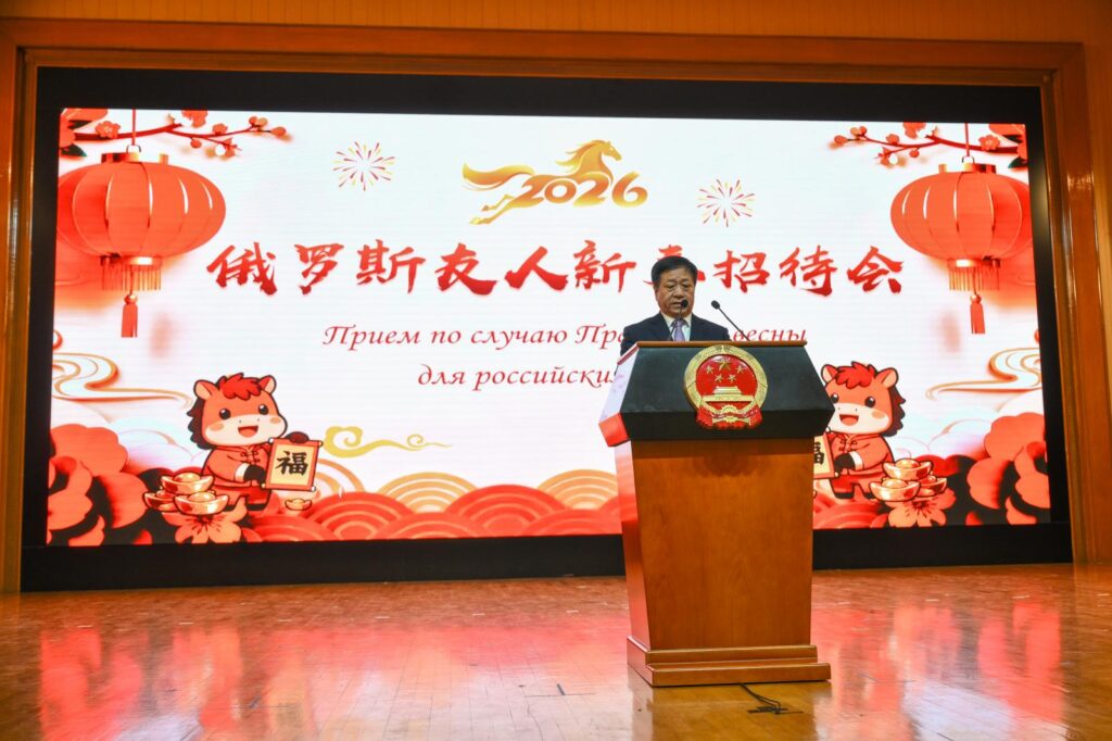 В ходе приёма перед собравшимися выступил Чрезвычайный и Полномочный Посол КНР Чжан Ханьхуэй. 2025 год он оценил как успешный в деле развития Китая и как плодотворный для китайско-российских связей. «Отношения между Китаем и Россией в новую эпоху стали еще более уверенными, стабильными и прочными«, – процитировал он слова Председателя КНР Си Цзиньпина.