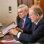 В рабочем кабинете Г.А. Зюганова в Государственной Думе состоялась встреча с кубинской делегацией во главе с министром иностранных дел Бруно Родригесом Паррилья. В ней приняли участие: Председатель ЦК КПРФ Г.А. Зюганов, первый заместитель Председателя ЦК КПРФ И.И. Мельников, заместитель Председателя ЦК КПРФ Д.Г. Новиков, секретарь ЦК КПРФ А.А. Ющенко. Прежде всего, речь шла о формах поддержки Острова Свободы в условиях всё более агрессивной линии Трампа.