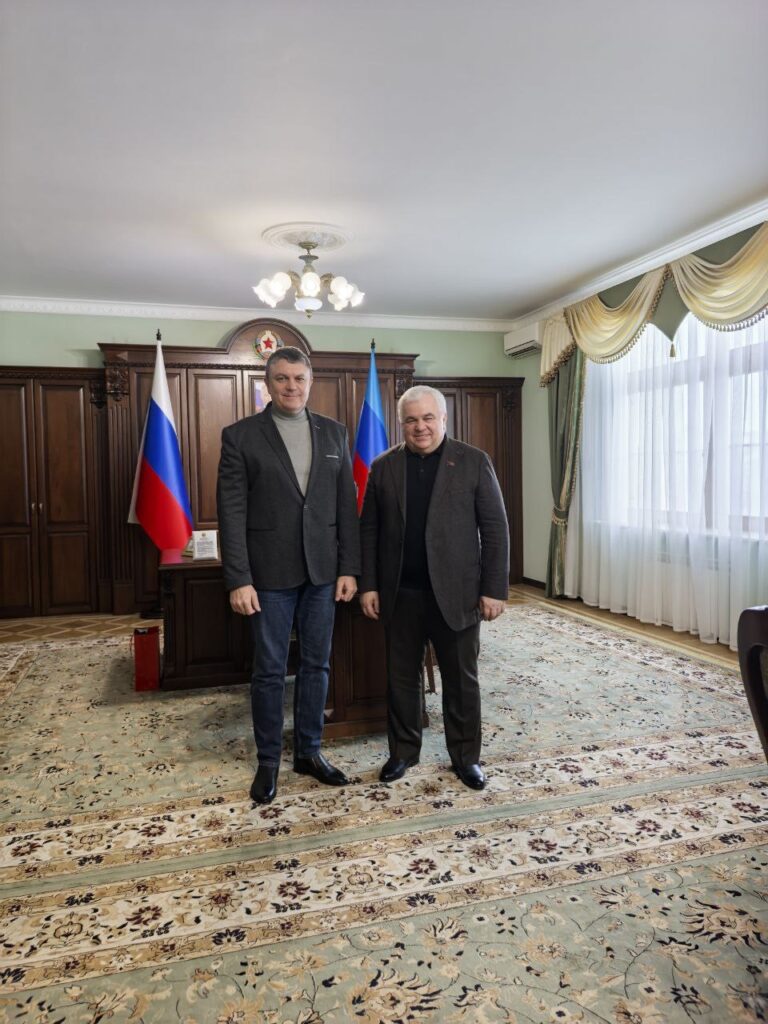 Утром состоялась встреча с Главой Луганской Народной Республики Леонидом Ивановичем Пасечником. Переговоры прошли в теплой, дружеской атмосфере.