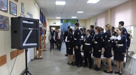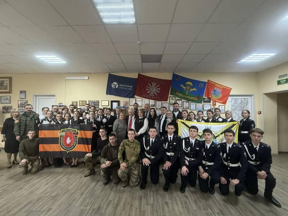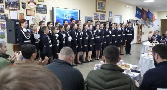 После возложения делегация вместе с бойцами подразделения «Пятнашка» посетила Республиканское бюджетное общеобразовательное учреждение «Школа № 4 — Кадетский корпус им. А. В. Захарченко».