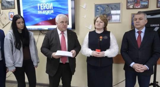 Особые слова благодарности делегация выразила Алле Ивановне Оболенской, первой учительнице Александра Захарченко. Ей также была вручена памятная медаль. «Алла Ивановна — это человек, который воспитал Героя. Низкий поклон Вам!» — сказал Казбек Тайсаев.