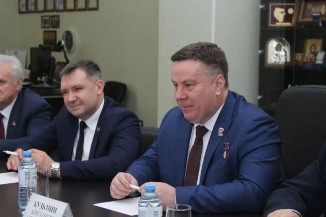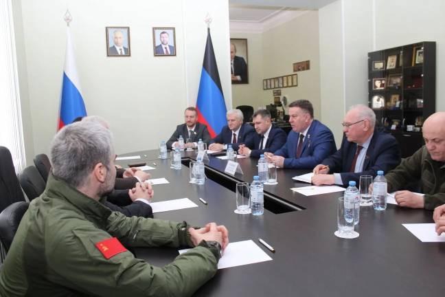 После этого в здании парламента ДНР делегация во главе с Казбеком Тайсаевым вместе с депутатами фракции КПРФ в Народном Совете ДНР встретилась с Председателем Народного Совета Донецкой Народной Республики Константином Александровичем Кузьминым. Стороны обсудили актуальные вопросы законотворческой деятельности и социально-экономического развития региона, обменялись мнениями по широкому кругу вопросов.