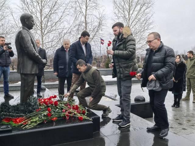 Утро началось с церемонии возложения цветов к памятнику первому Главе Донецкой Народной Республики Александру Владимировичу Захарченко. Делегация почтила память легендарного лидера, стоявшего у истоков создания Республики и отдавшего жизнь за свободу Донбасса.