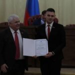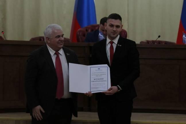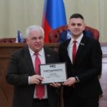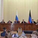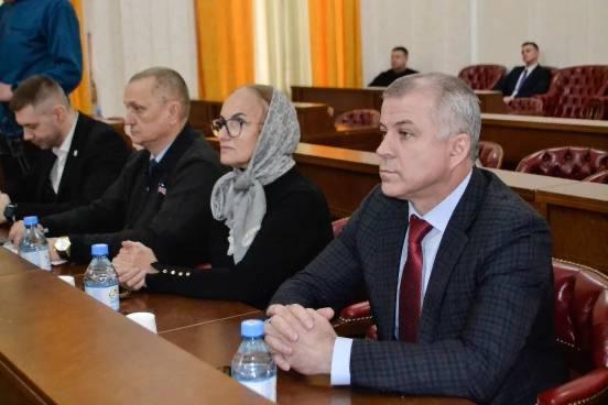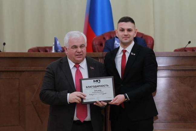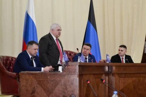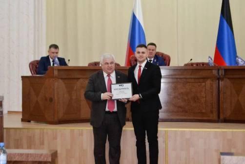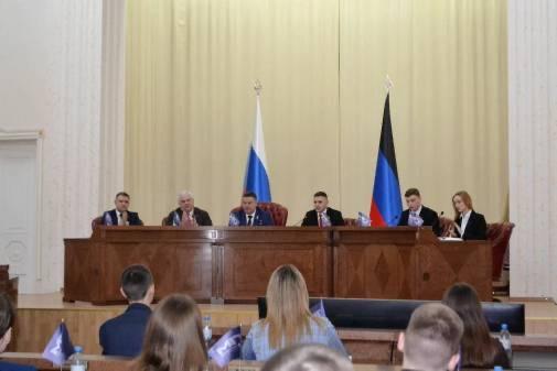 По приглашению председателя Молодёжного парламента ДНР Сергея Владимировича Журавлёва делегация приняла участие в заседании молодёжного органа законодательной власти. Казбек Тайсаев обратился к молодым парламентариям с приветственным словом: