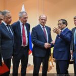 «Агрессивная политика США неизбежно будет обречена на провал. Это не раз подтверждалось в истории. В XX веке вьетнамский народ в ходе народно-освободительной борьбы изгнал американских агрессоров со своей земли. И в этот раз американская военщина также потерпит фиаско, — уверенно заявил Г.А. Зюганов. – Но для достижения победы мы должны объединить усилия прогрессивных сил во всем мире. Наша энергичная работа в рамках международных организаций БРИКС и ШОС позволит обуздать американских империалистов и не допустить глобального военного конфликта».