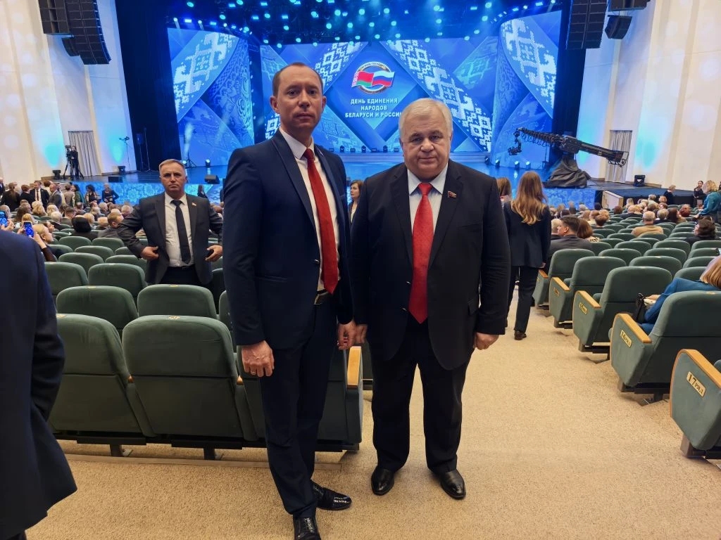 В завершении насыщенного праздничного дня стал масштабный концерт, посвященный Дню единения народов Беларуси и России. Делегация КПРФ во главе с Казбеком Тайсаевым посетила это грандиозное событие, которое развернулось на одной из самых главных сцен Беларуси в городе Герой Минска во дворце Республики.