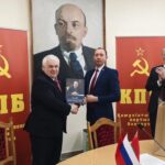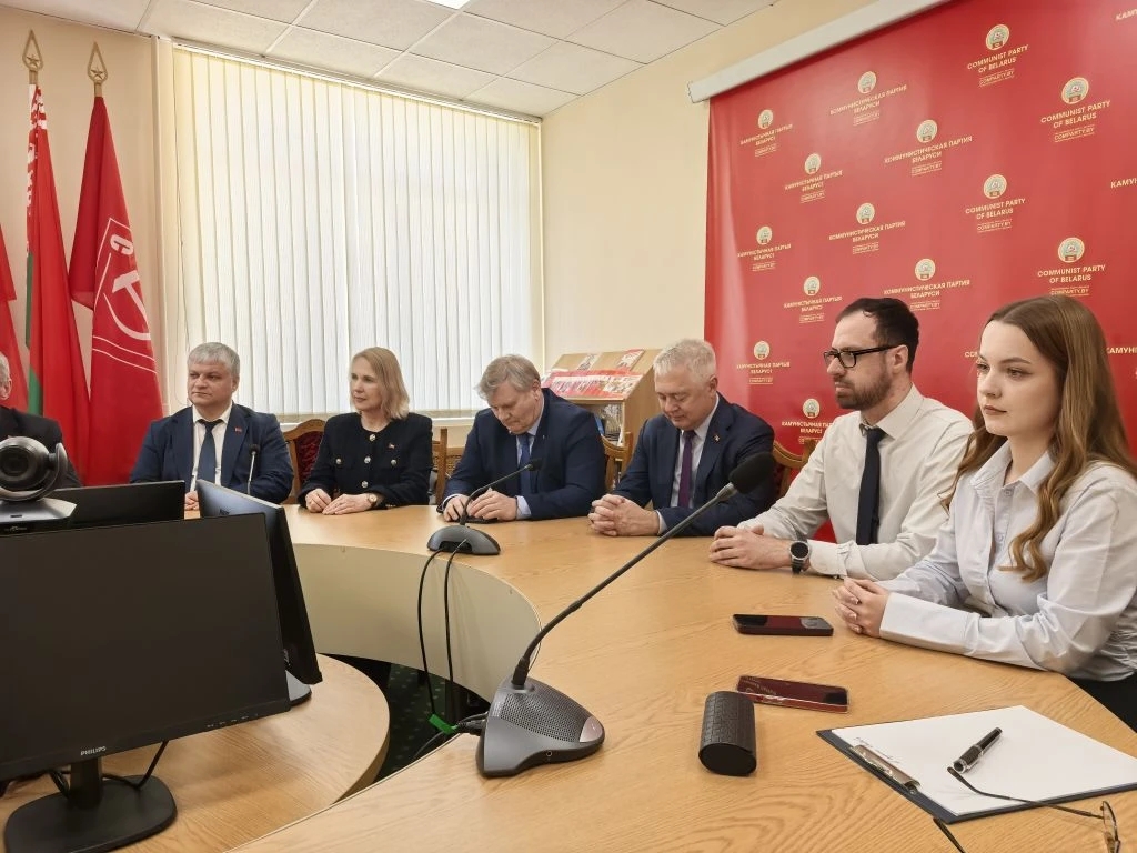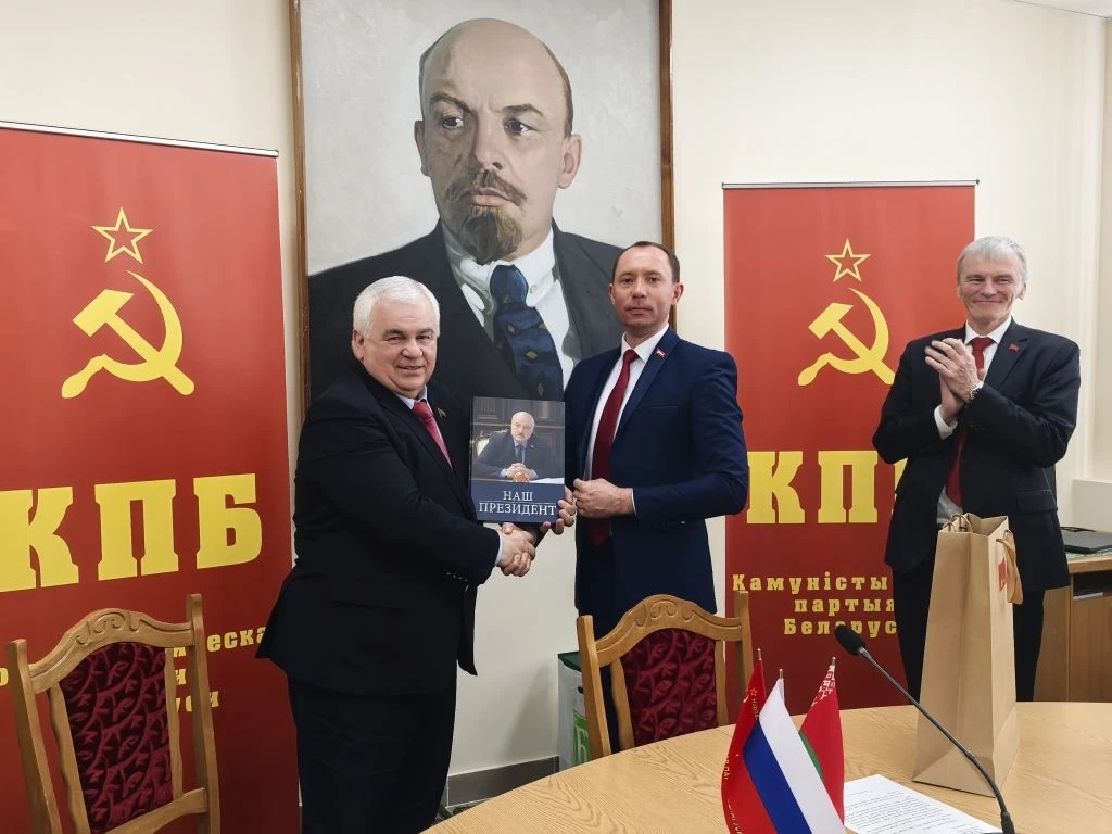 Первого заместителя Председателя ЦК Афонина Юрия Вячеславовича, Заместителя Председателя ЦК КПРФ Владимира Ивановича Кашина, Заместитель Председателя ЦК КПРФ Калашникова Леонида Ивановича, Заместитель Председателя ЦК КПРФ Новикова Дмитрия Георгиевича и всего руководства Коммунистической партии, поздравив их с праздником. Подчеркнул важность консолидации левых сил на пространстве Союзного государства в условиях беспрецедентного внешнего давления, отметив, что именно воля народов двух стран, скрепленная общим историческим прошлым и социалистическими ценностями, позволяет строить общее будущее. Одной из главных тем обсуждения стала подготовка к Форуму, который состоится в Москве в мае этого года. Стороны обменялись мнениями по вопросам идеологической работы, защиты прав трудящихся.