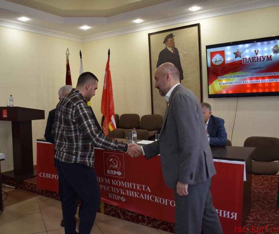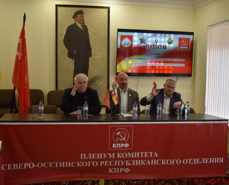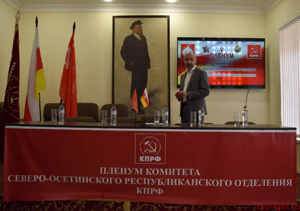27 апреля в г. Владикавказ прошел V Пленум СОРО КПРФ. Открыл и вел работу Пленума первый секретарь Комитета Северо-Осетинского республиканского отделения КПРФ, руководитель фракции КПРФ в Парламенте РСО – Алания Дудати Чермен Аланович.